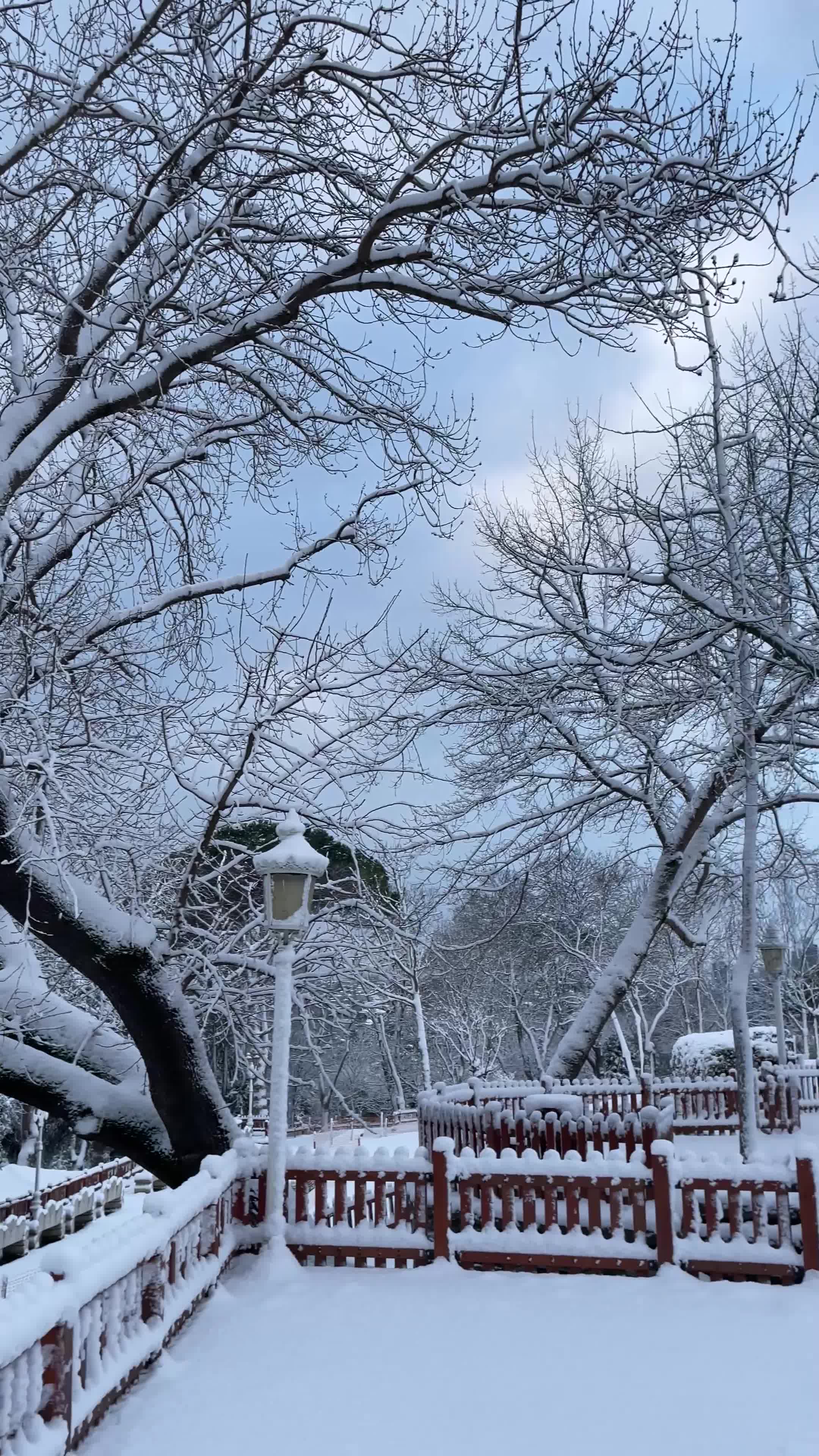 Ağaç dallarının beyazlaması doğrudan havaya sokuyor insanı, çok güzel duruyor. Az önceki kısa süreli yağışta bembeyaz oldular tekrardan