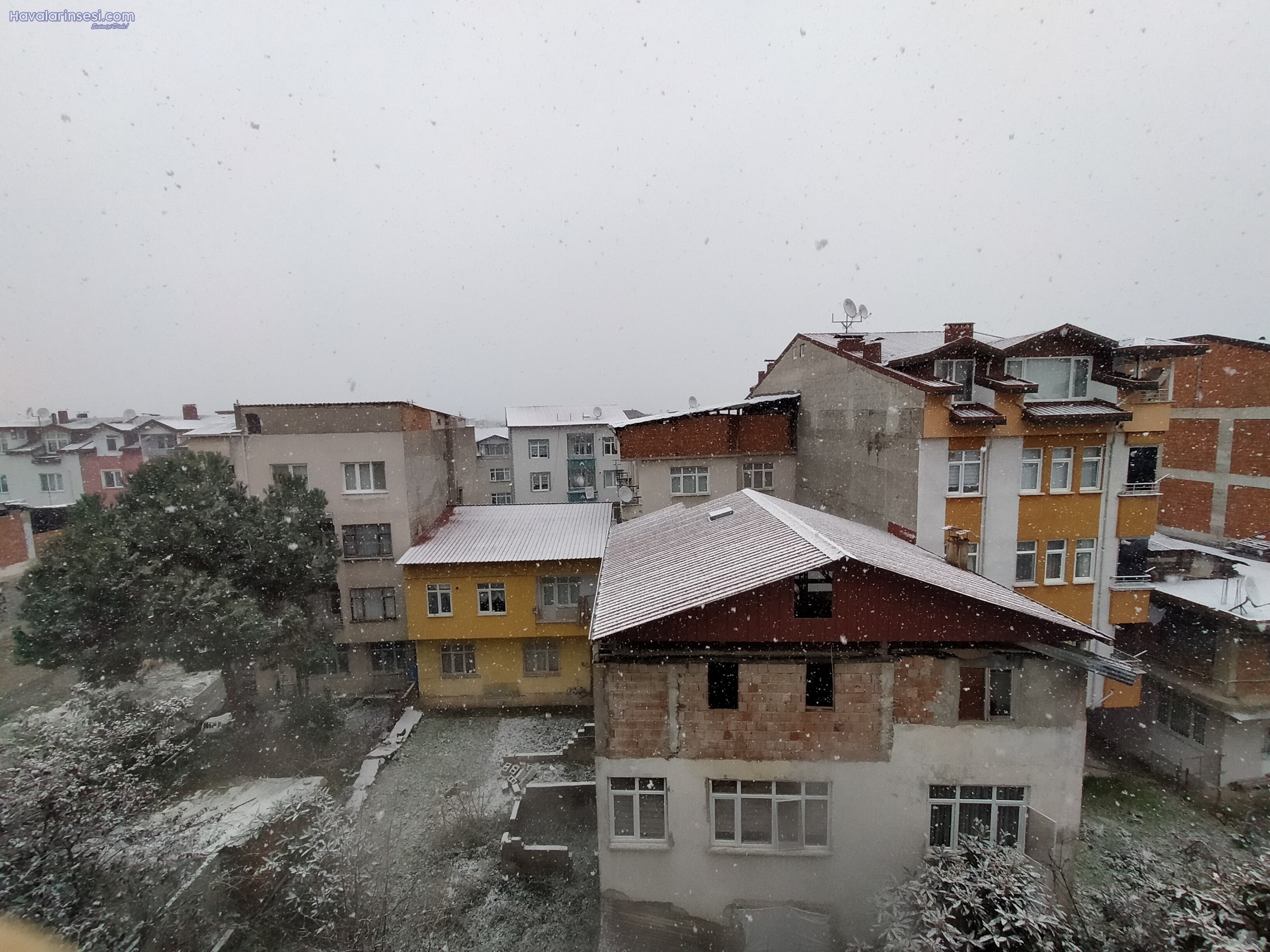 Ordu Altınordu'da saat sabah. 8"de başlayan kar yağışı yaklaşık 2 saattir aralıklı olarak devam ediyor