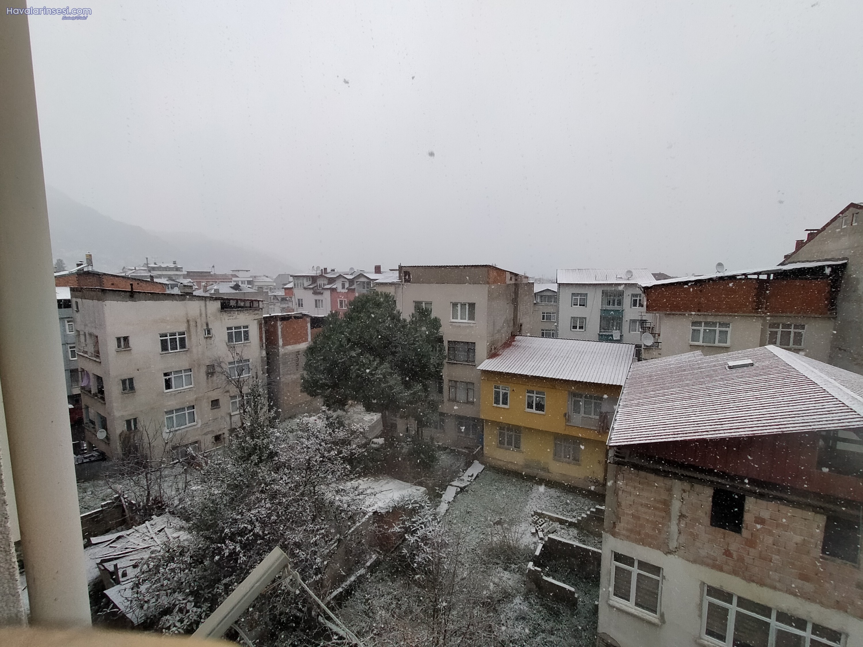 Ordu Altınordu'da saat sabah. 8"de başlayan kar yağışı yaklaşık 2 saattir aralıklı olarak devam ediyor